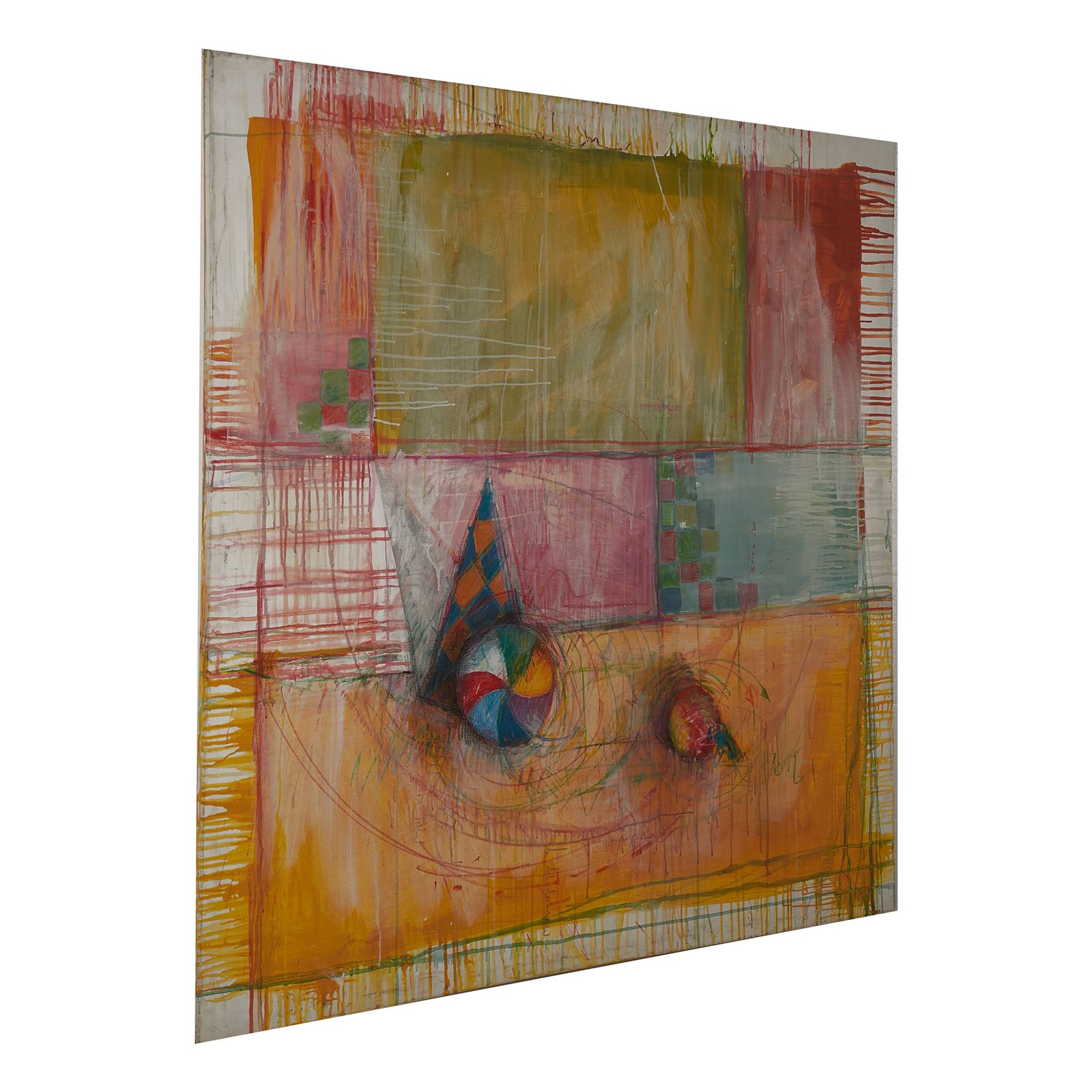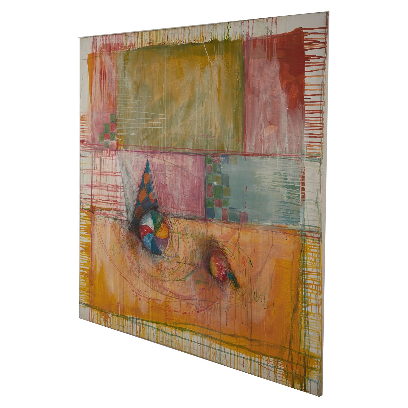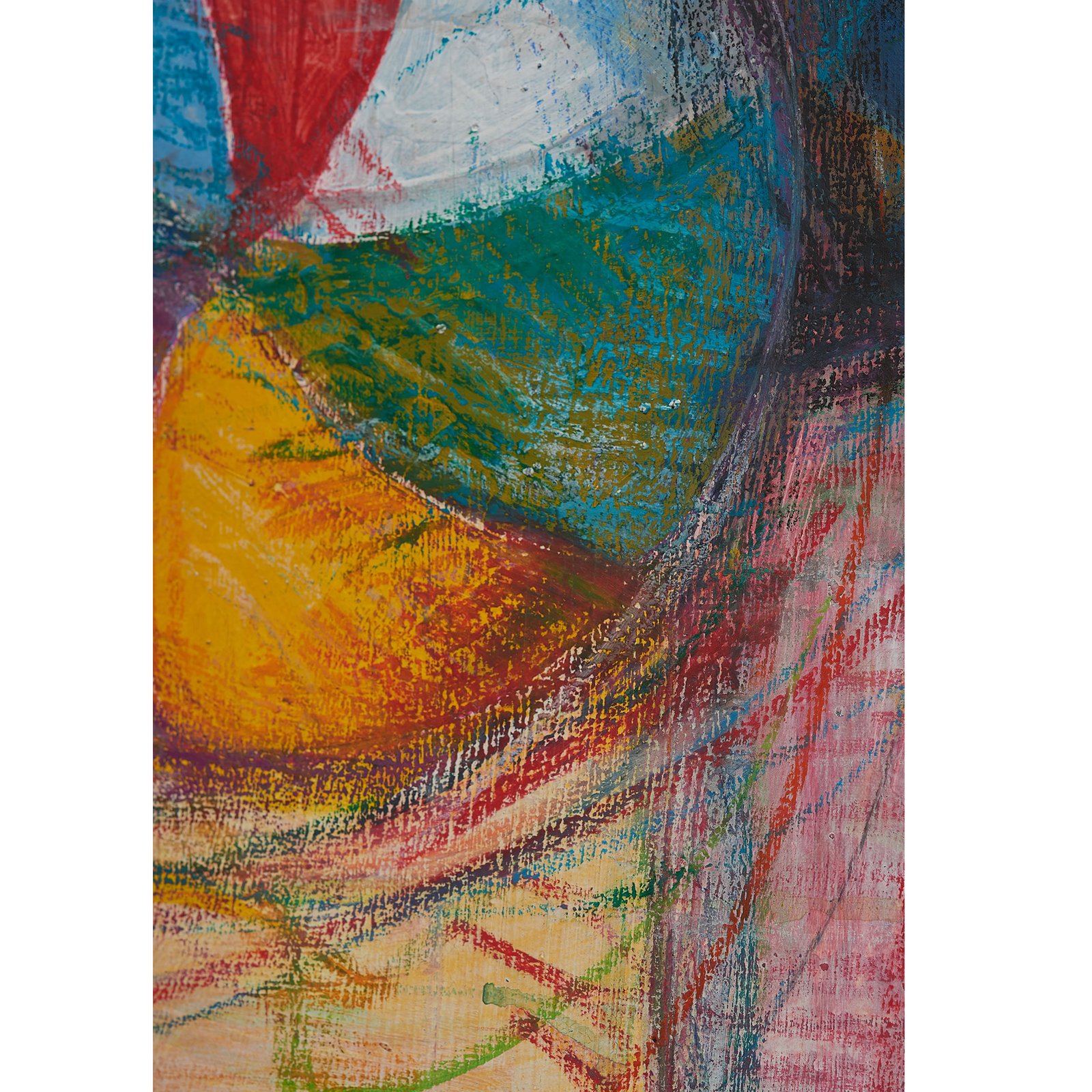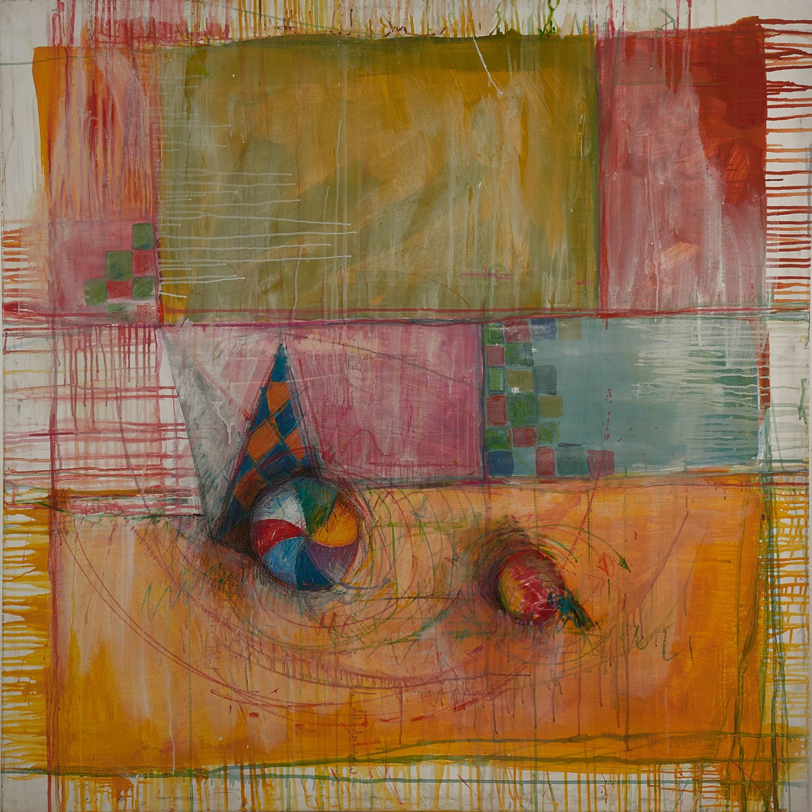 Con “Naturaleza No Tan Muerta con Pirámide y Pelota” quise darle vida a lo inerte, despertar la energía de lo que creíamos quieto. Es un juego de formas y colores, donde cada pincelada es un pulso, un eco de la vitalidad que encuentro en lo inesperado. Siento que es una pieza que invita a la reflexión, a ver más allá de lo evidente y a encontrar la belleza en la danza constante de la vida..