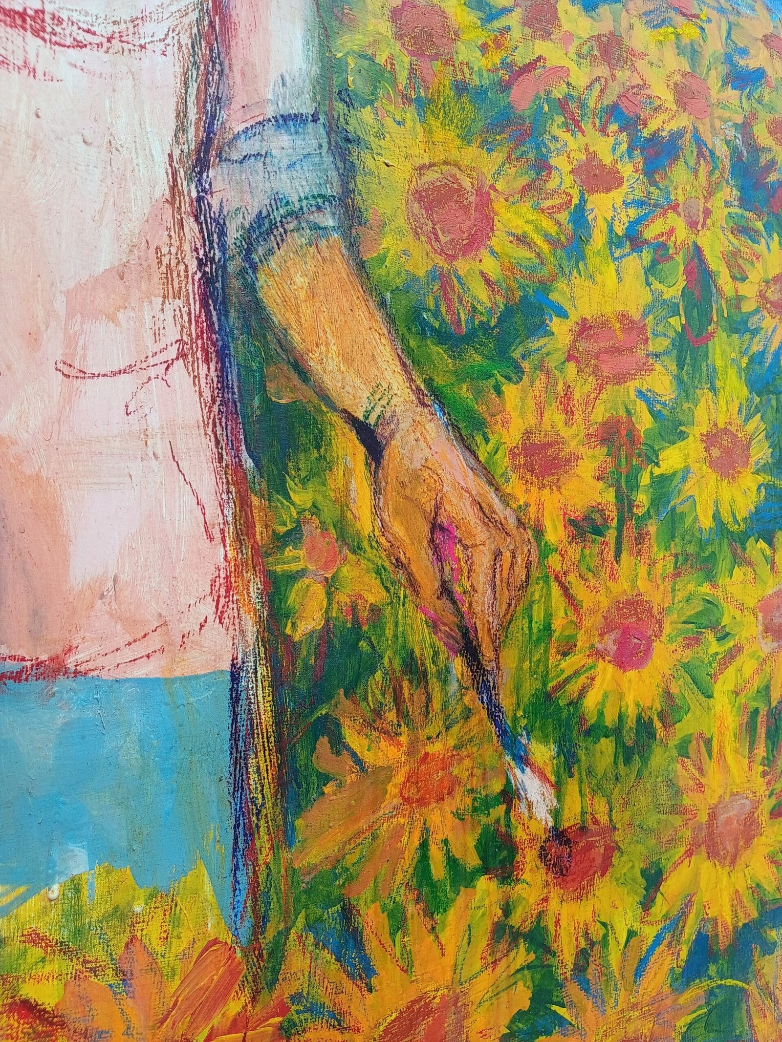 Es mi tributo a la pasión por el maestro, capturado en un torbellino de color y movimiento. He intentado plasmar la esencia de su espíritu indomable, su búsqueda incesante de la luz y la vida.